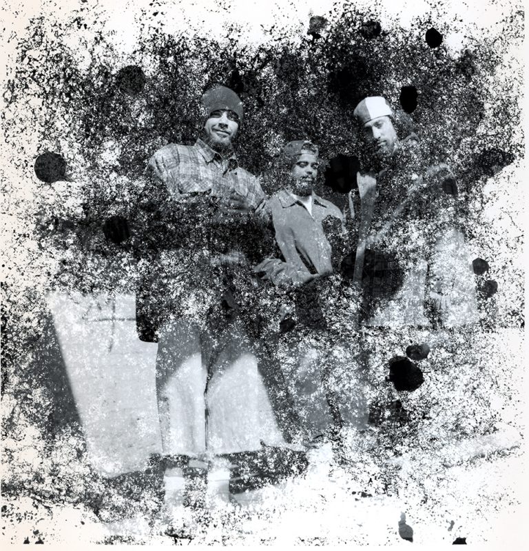 In the darkroom, I was experimenting with “controlled chaos.” On the black and white prints, I used a liquid developer spray directly onto the paper, exposing only specific parts of the frame. This created those aggressive, splattered borders and organic shapes that framed the group, making each print a one-of-a-kind artifact.