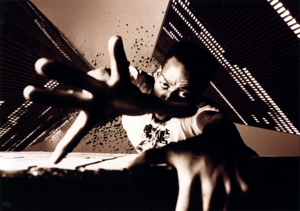 This was my first single cover, back in 1992, right after House of Pain was blowing up. The group was called No Concept, totally independent, with a song called Help Us, We’re Dope, and We Can’t Get Up. I wanted the cover to match that title — something dramatic, visually literal, but impossible: a guy hanging off a building.